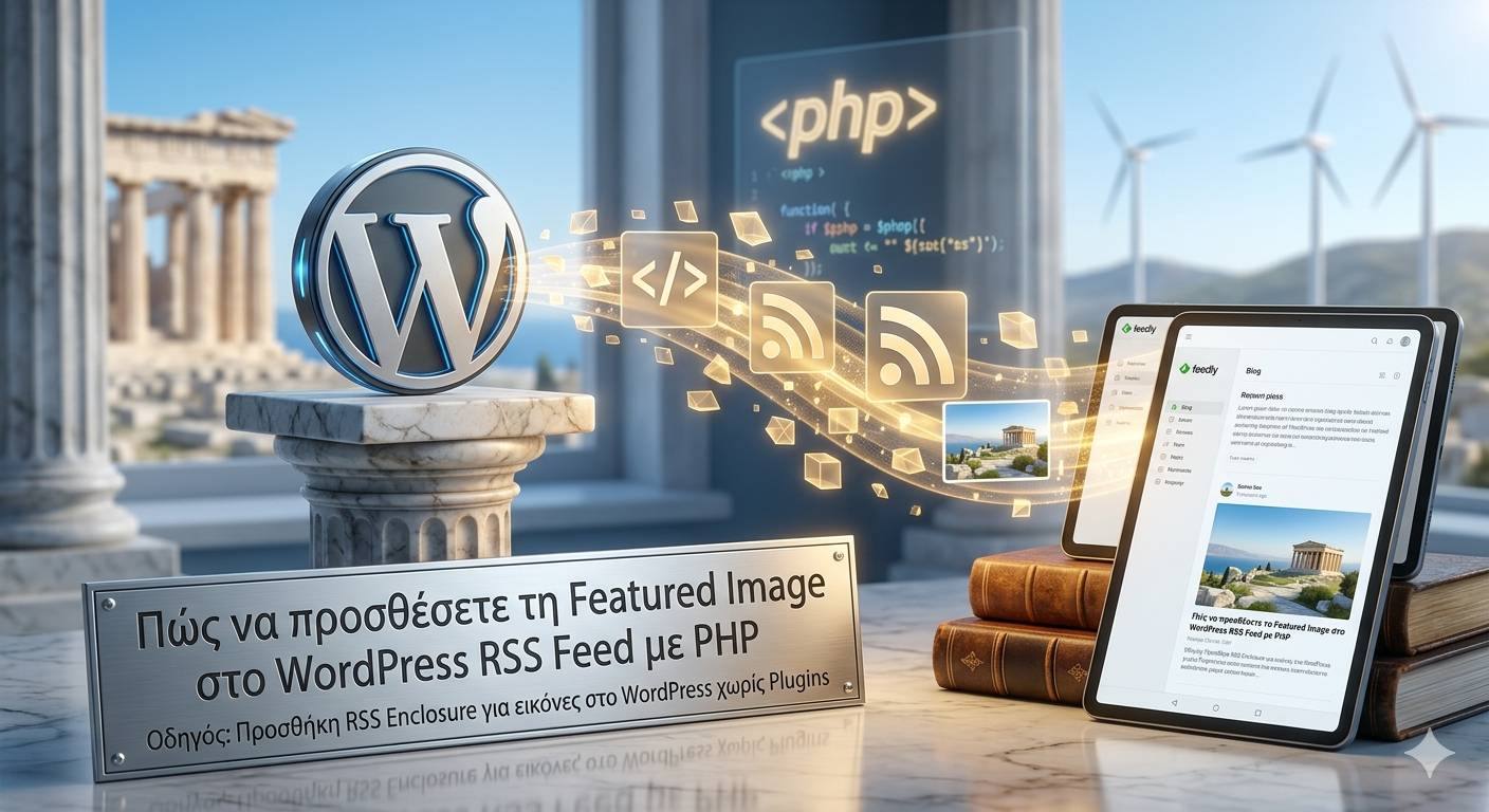 Αν διαχειρίζεσαι ένα WordPress site και θέλεις τα άρθρα σου να φαίνονται σωστά σε RSS readers (όπως το Feedly) ή να γίνονται σωστά “import” από άλλα εργαλεία, θα έχεις παρατηρήσει ότι το WordPress δεν περιλαμβάνει αυτόματα τη Featured Image στο RSS feed.