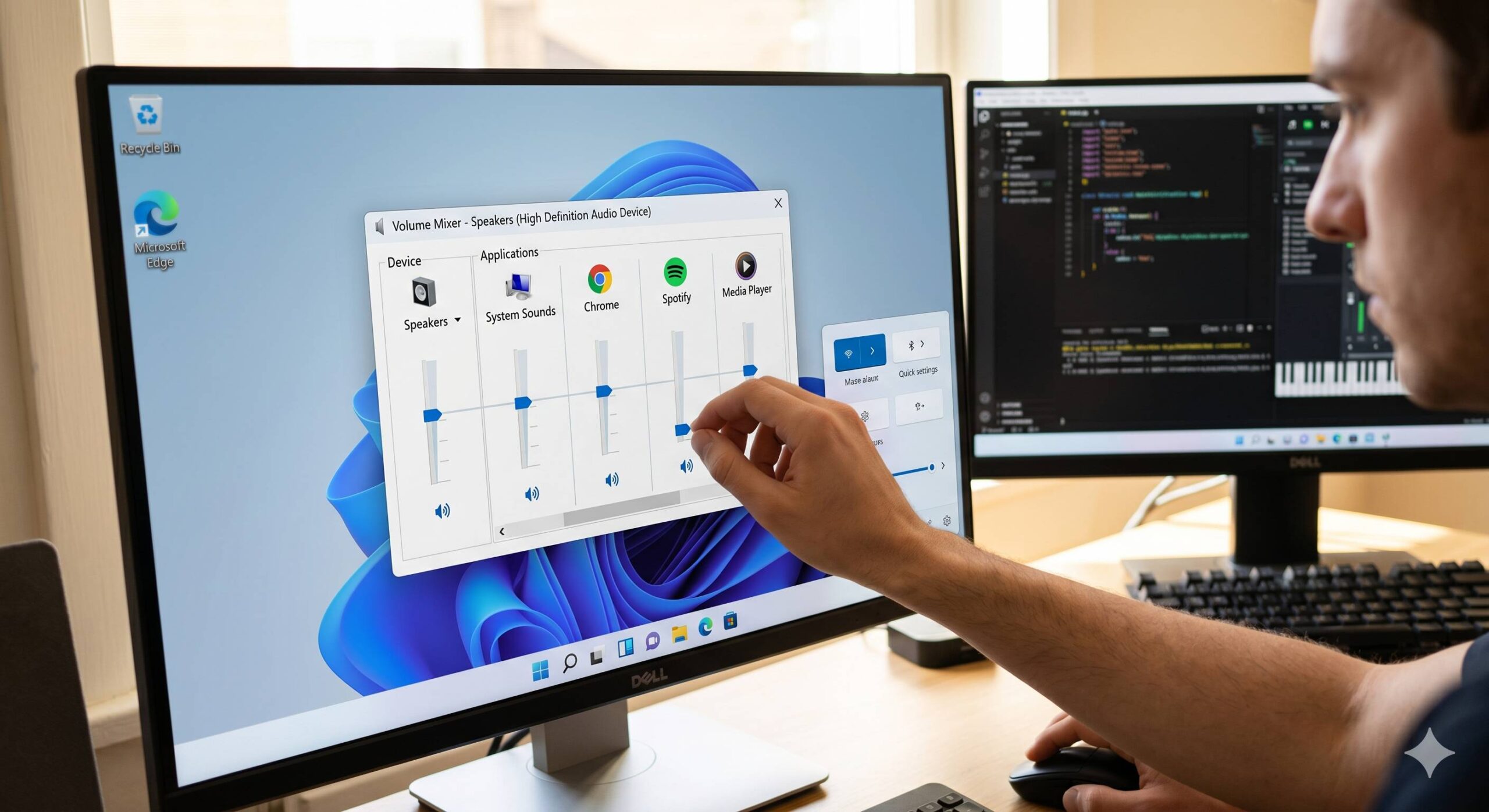 - Με ένα κλικ ανοίγει μπάρες έντασης για κάθε εφαρμογή ξεχωριστά, ακριβώς όπως ο παλιός mixer, αλλά με τη μοντέρνα εμφάνιση των Windows 11.